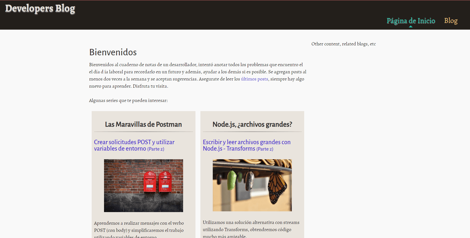 Es por eso que se he creado un componente que permite ver una serie de posts relacionados. Veamos el antes: